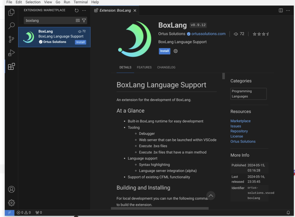 * Use the integrated VS Code terminal for BoxLang commands