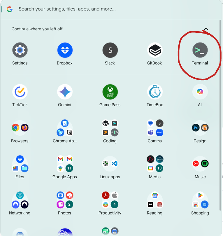 **Pro Tip**: The Linux environment runs in a secure container that's isolated from Chrome OS, providing a safe development space while maintaining system security.