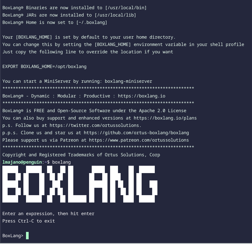 BoxLang installation is straightforward with the official installer script: